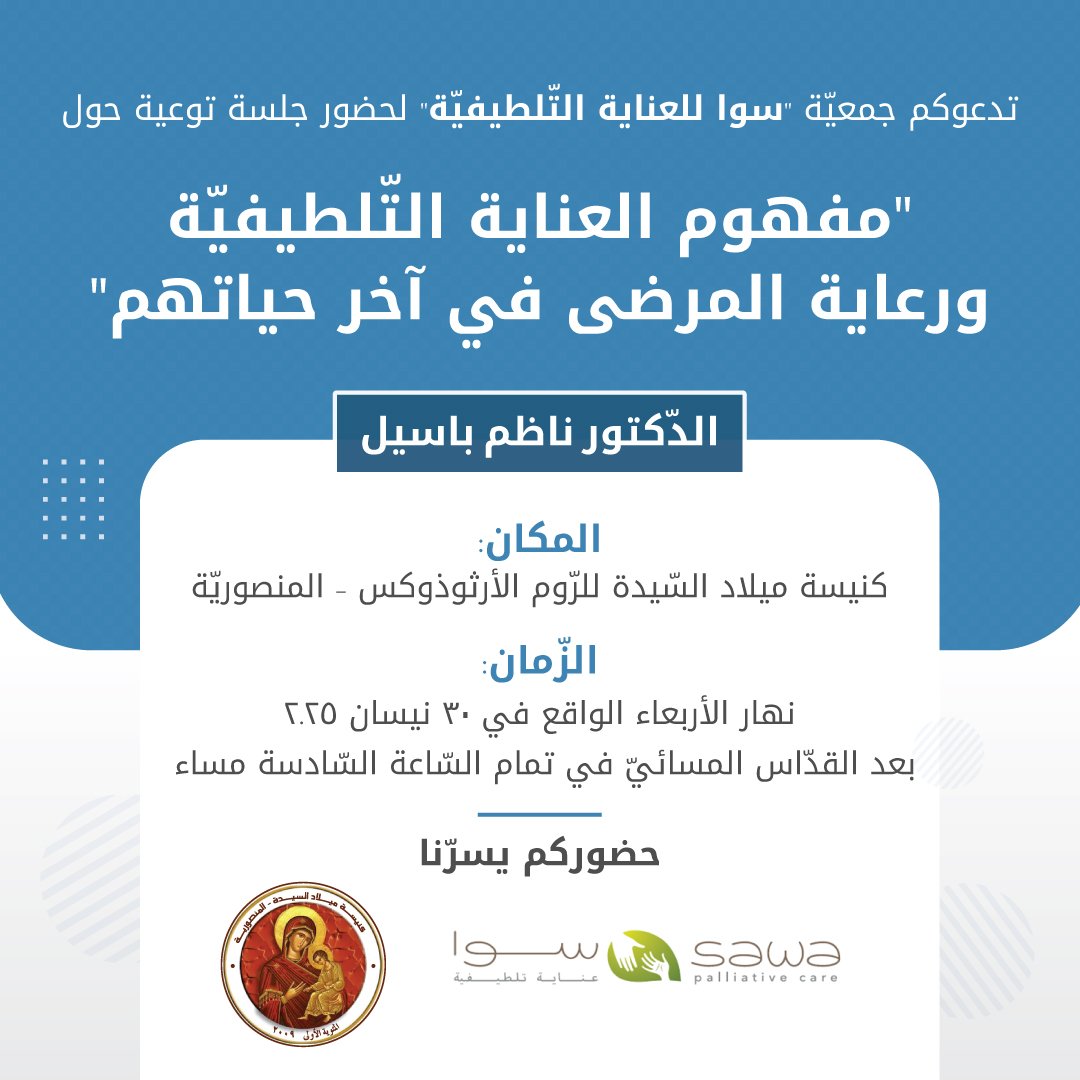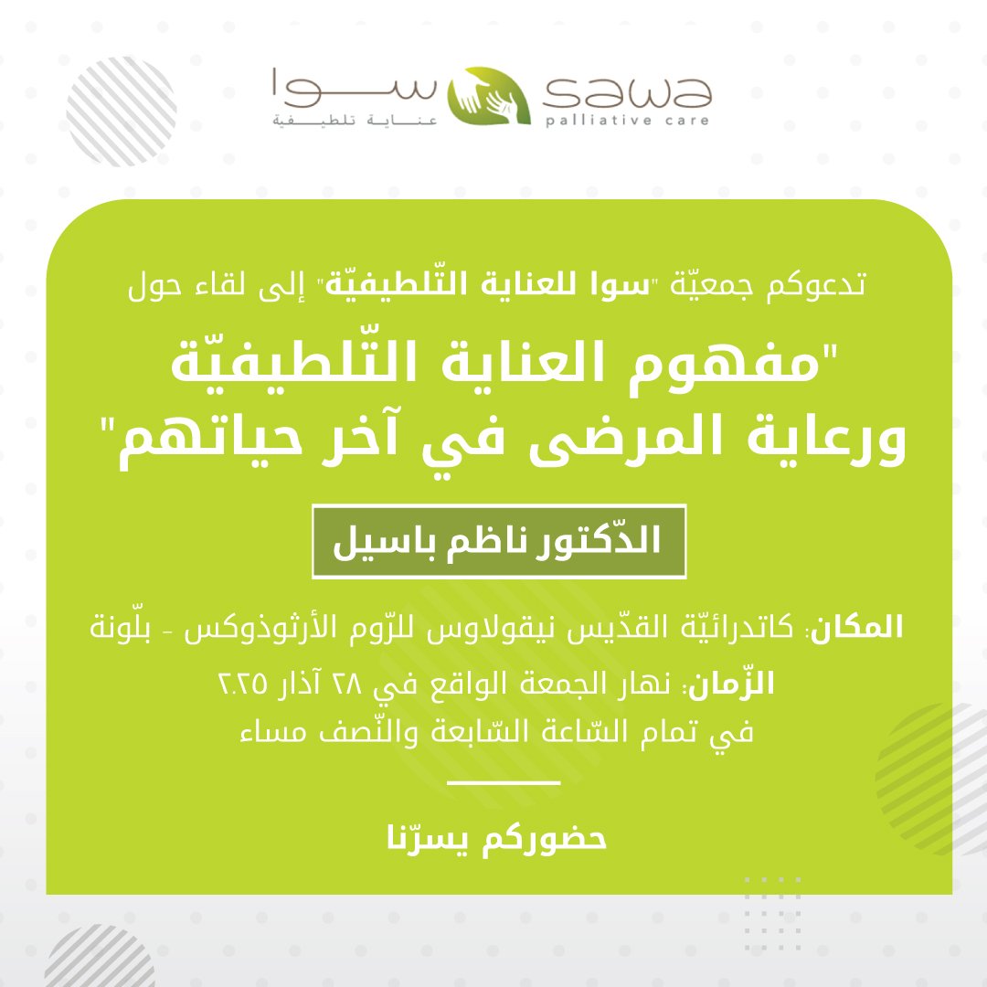 SAWA is a Non-Profit Organization Providing Free Palliative Care at Home to Patients with Terminal illnesses by Focusing on their Medical, Psychological, Social and Spiritual Needs